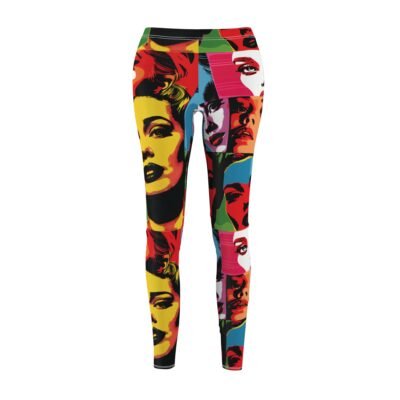 Pop Art Female Hollywood Star Leggings – Faces Pattern, Bold and Colorful Yoga Pants