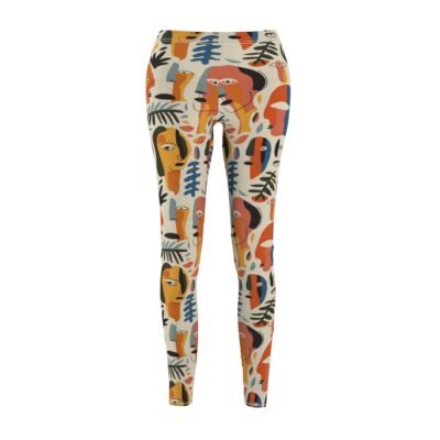 Abstract Faces and Flora Pattern Leggings – Bold and Artistic Yoga Pants